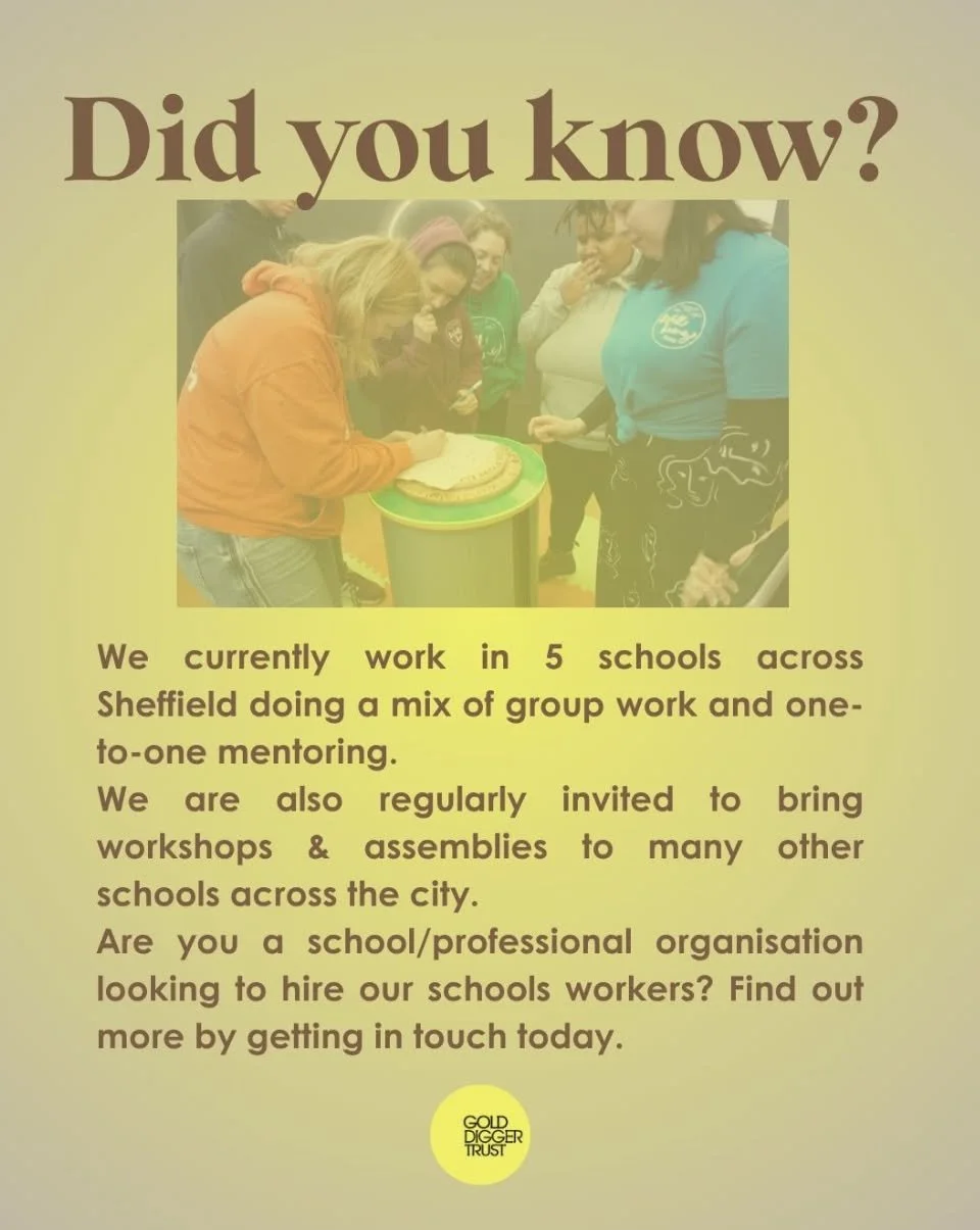 We are all about building positive wellbeing in young people, based in Sheffield, and impacting the UK. Investing in thousands of young people through innovative projects and programmes, Golddigger Trust is committed to ‘digging out the gold’ within people and helping them to reach their full potential.